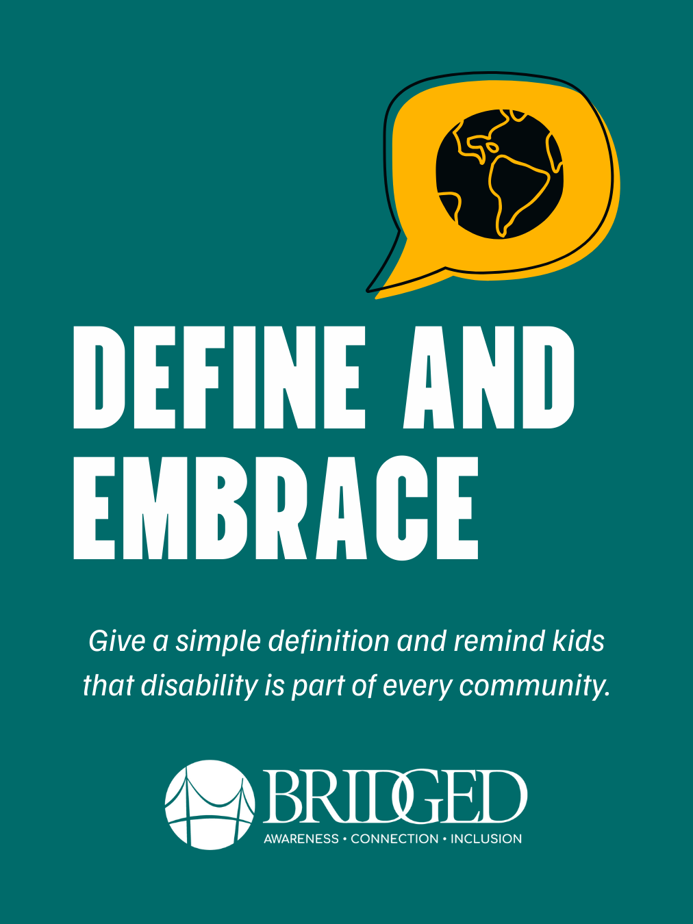 “A disability is any condition that affects a person’s brain and/or body and affects the way a person does something.” (This is the EXACT definition we use at BRIDGED.)